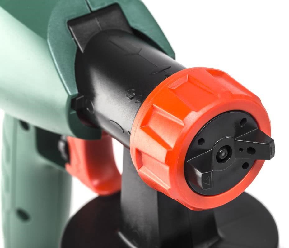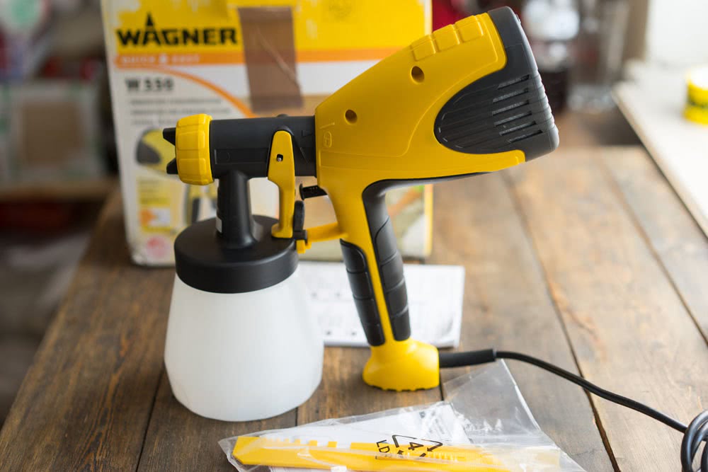 Wagner WP 585 Flexio. Краскопульт типа «все в одном», с турбинным нагнетателем, встроенным прямо в корпус аппарата. Он отличается высокой мощностью — 630 Вт, удобно ложится в руку, мобилен и функционален. Особая технология X-Boost обеспечивает возможность работы с вязкими составами, краскопульт универсален, оснащен системой регулировки, настраивающей интенсивность потока воздуха. Это практически идеальное решение для домашнего использования.