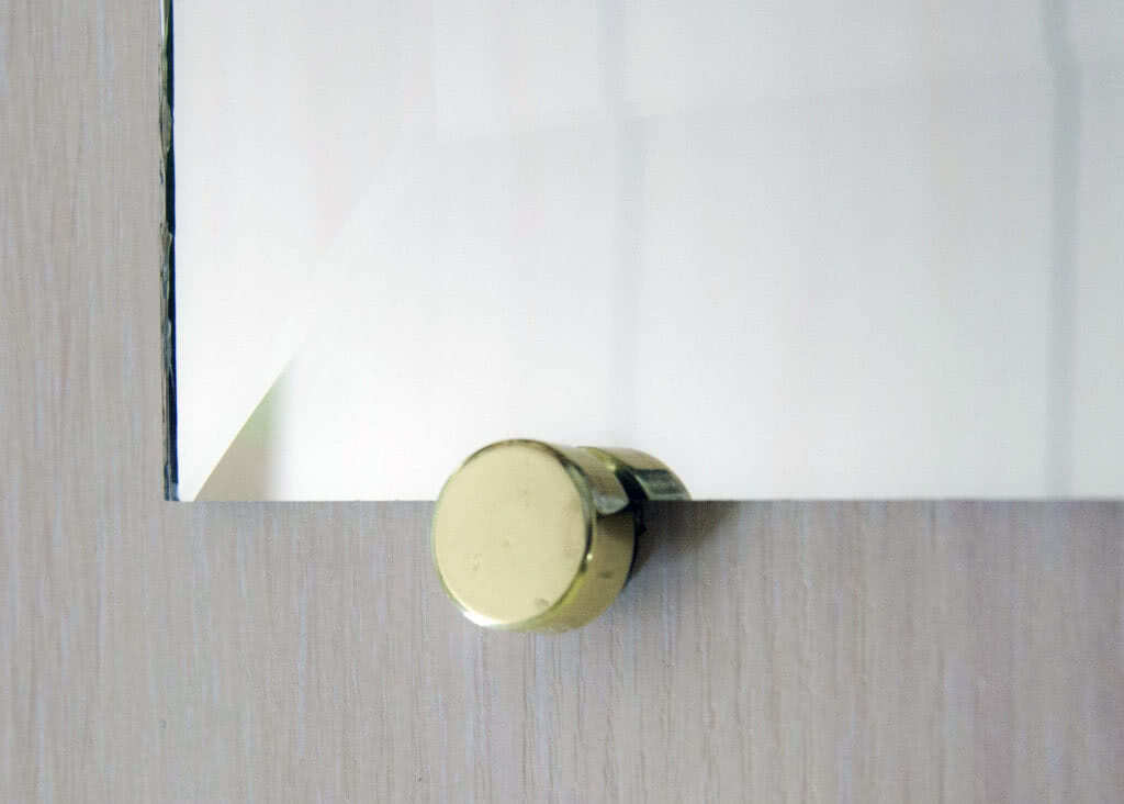 Как повесить с помощью механического метода? Способ подразумевает под собой использование в работе специальных крепежей, предназначенных для установки зеркал на мебельные поверхности. Основные варианты этого метода: