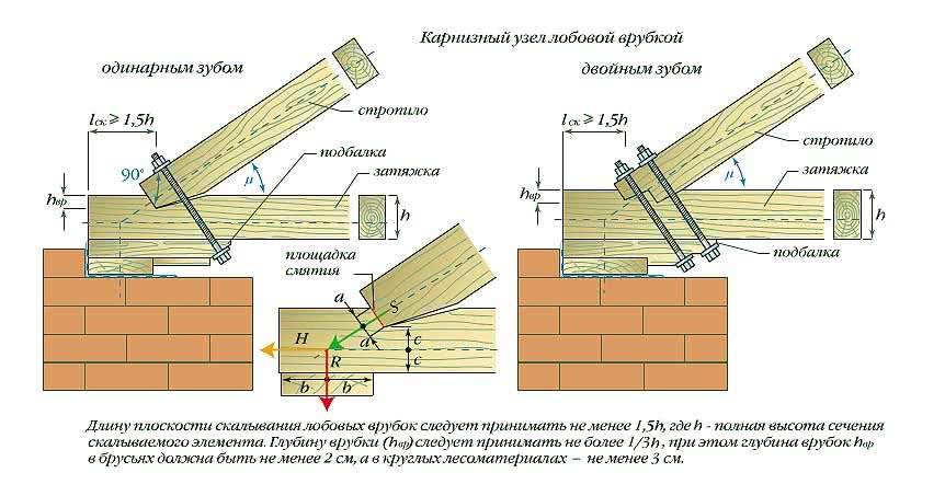 Варианты врубки стропил в балку