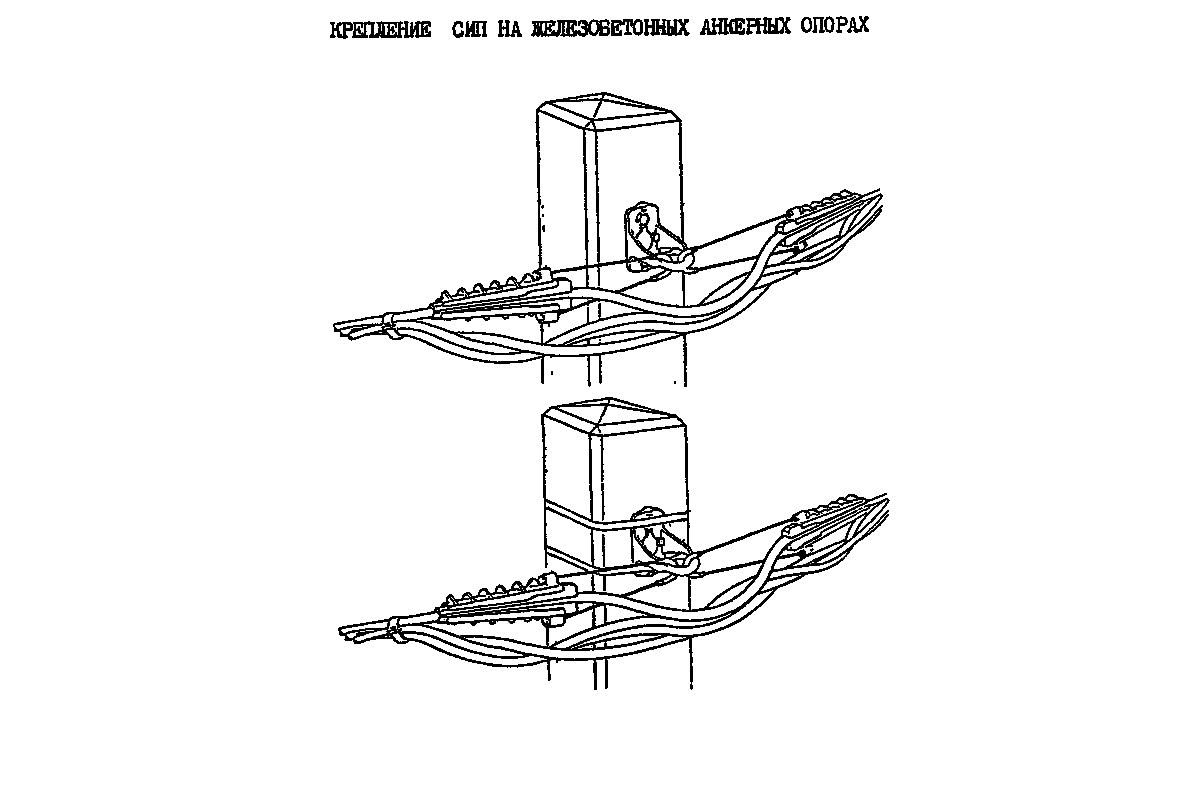 Чертеж анкерного крепления самонесущего кабеля к железобетонной опоре приведен ниже.