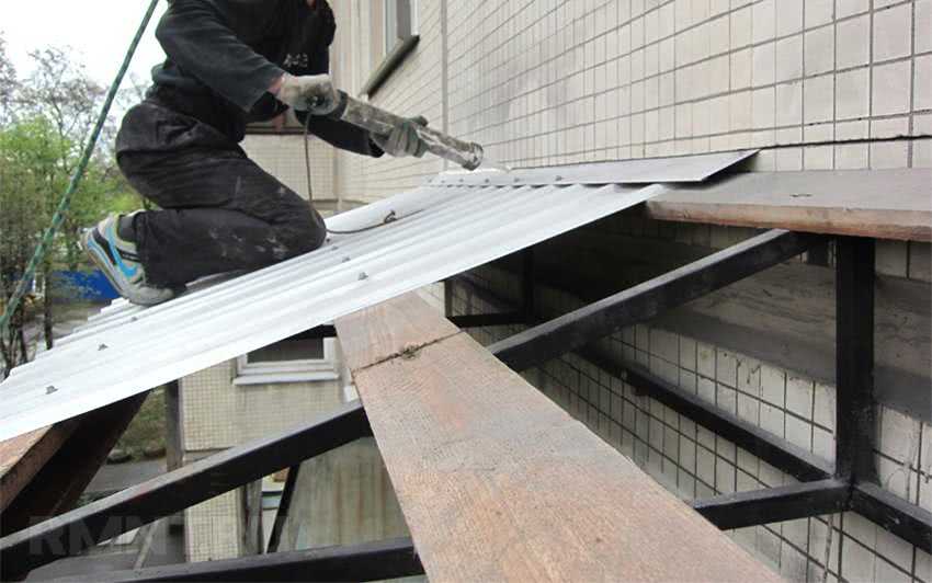 Обратите внимание: после окончания монтажа каркаса навеса над крыльцом необходимо обработать его антикоррозийным составом. Если профили уже имеют такую защиту, покрываем антикором только сварочные швы и места вхождения метизов. Только после этого можно приступать к укладке кровельного материала.