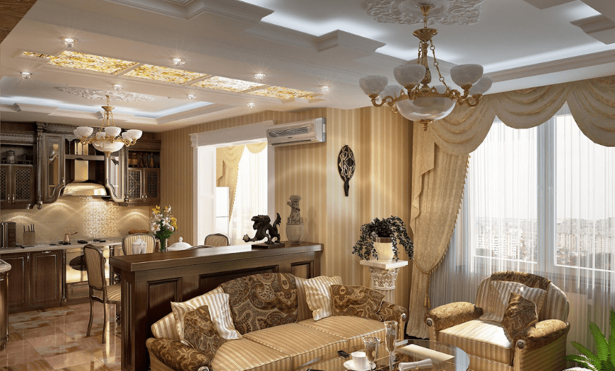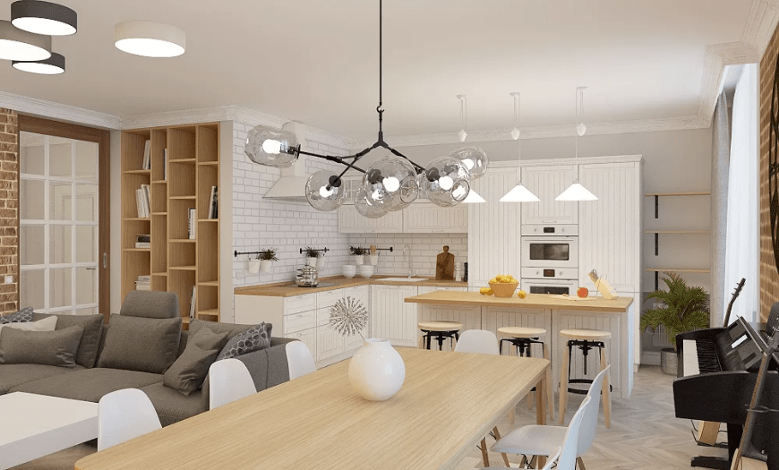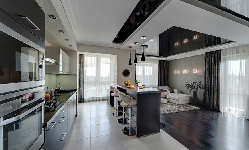 Дизайн-решений по обустройству кухни и гостиной может быть огромное количество.