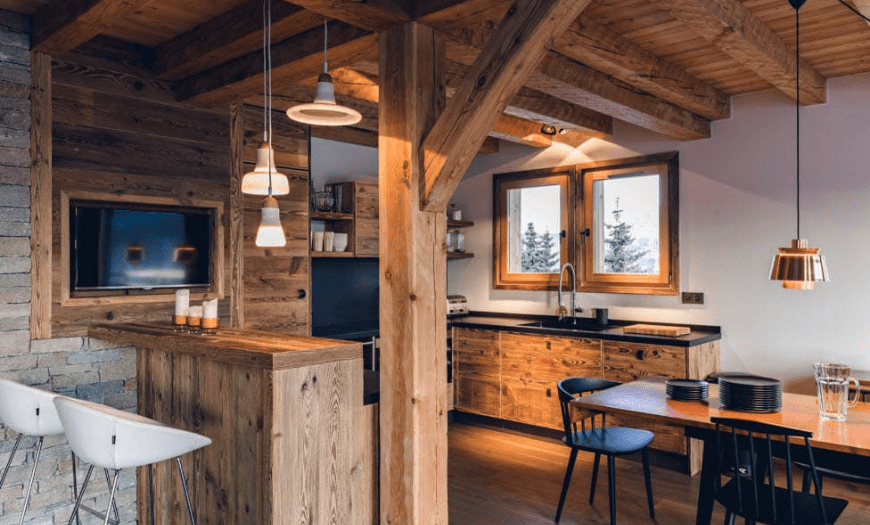 Деревенский дизайн, в котором преобладают светлые и теплые оттенки, классическая мебель, камин и иные интерьерные элементы, создающие вместе уютную домашнюю атмосферу.