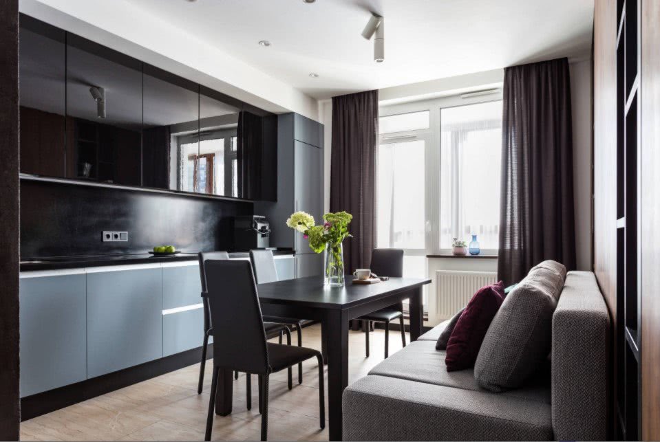 Наличие небольшой по размеру кухни в 9 кв. м. актуально для кирпичных и панельных многоэтажек. И насколько бы такое помещение не казалось миниатюрным, здесь прекрасно можно разместить кухонный гарнитур, обеденный стол, минимальное количество бытовой техники и прочих предметов интерьера, особенно если речь идёт о варианте объединения кухни с балконом