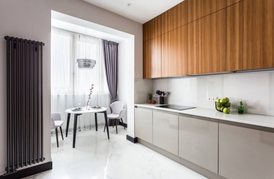 Если стена оказалась несущей, то совмещение кухни и лоджии окажется невозможным, и никто не разрешит такую перепланировку. Перемещать и переносить батареи централизованного отопления на балкон/лоджию строго запрещено, а значит, придется заранее продумывать систему отопления на этом участке.