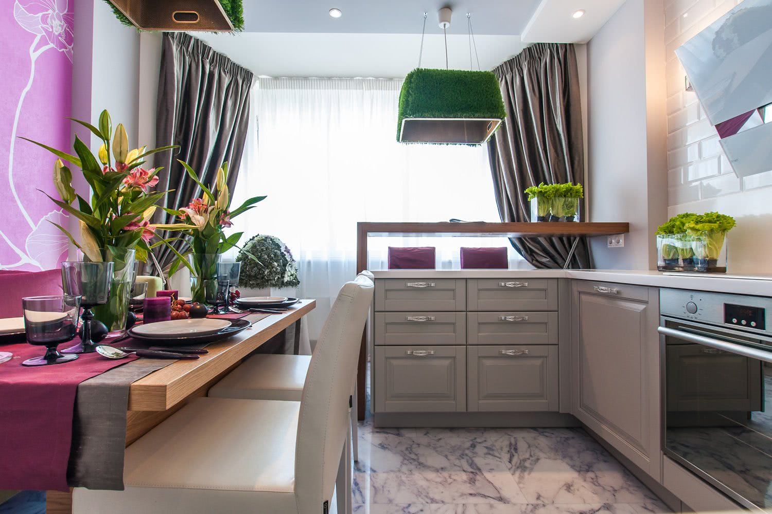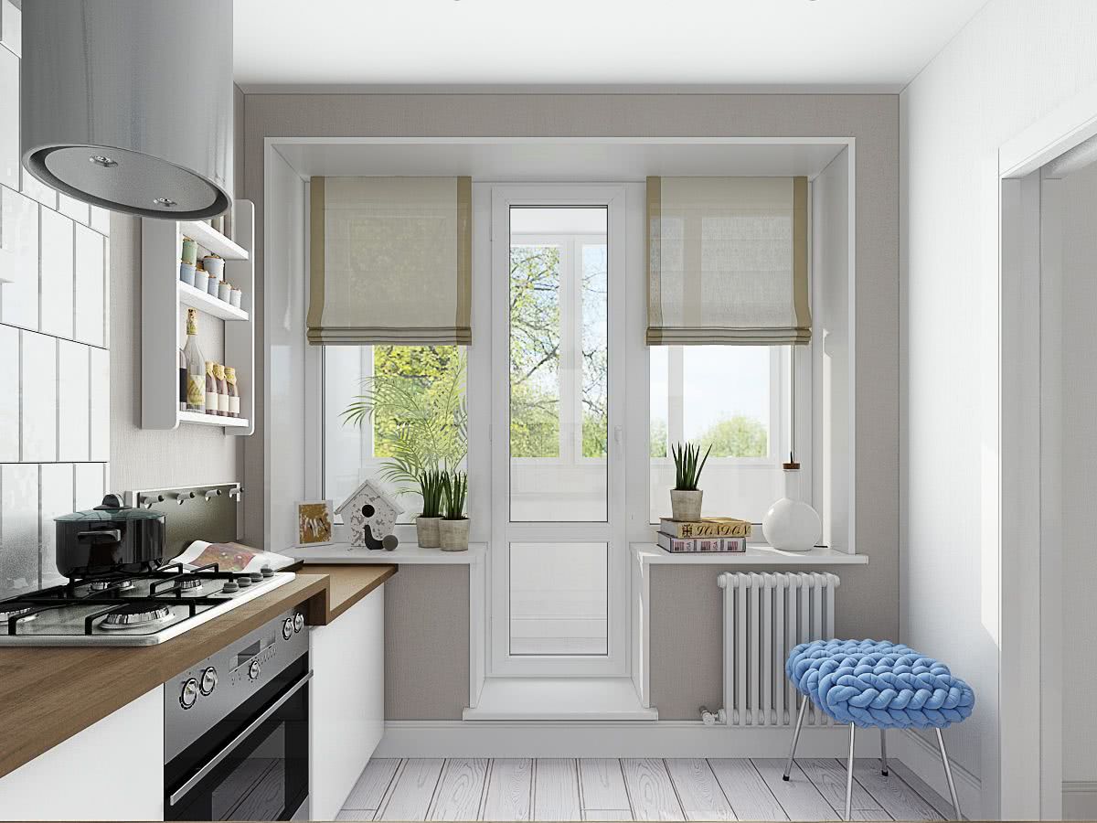 Что ж, подведем итоги. Если вам повезло и у кухни есть выход, то открывается широкий спектр вариантов дизайна: от простой красивой шторы, до полной перепланировки помещения.