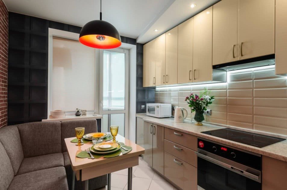 Дизайн кухни 9 кв. м. с балконом