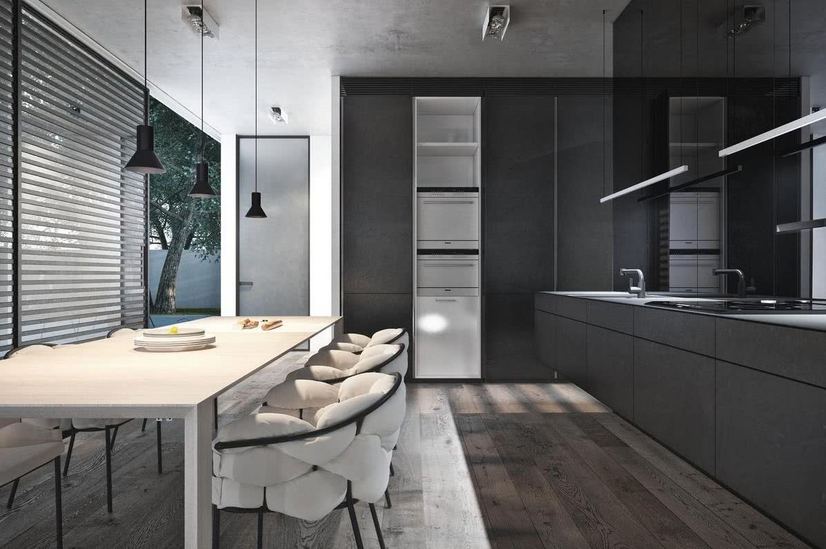 В частных домах есть где развернуться творческому мышлению, поэтому нередко можно увидеть симпатичные хай-тек и лофт концепты и в формате кухни.