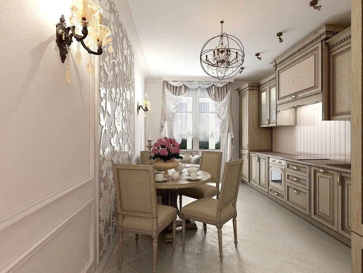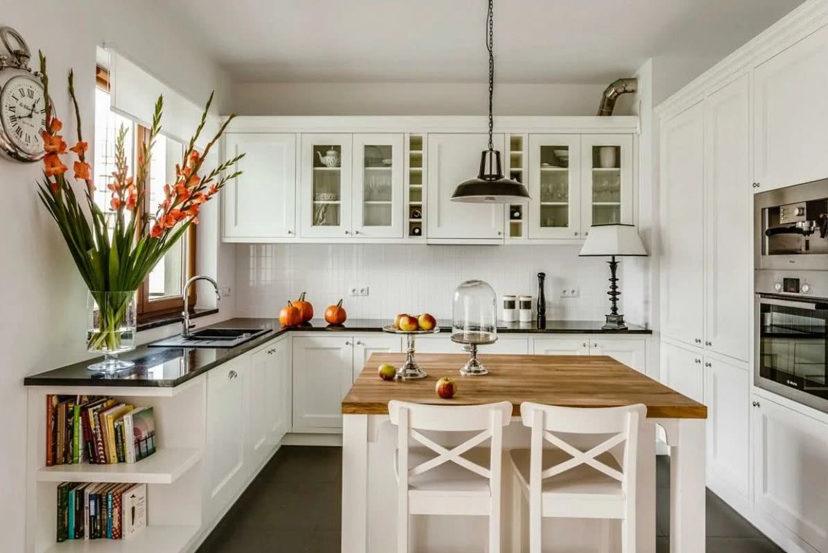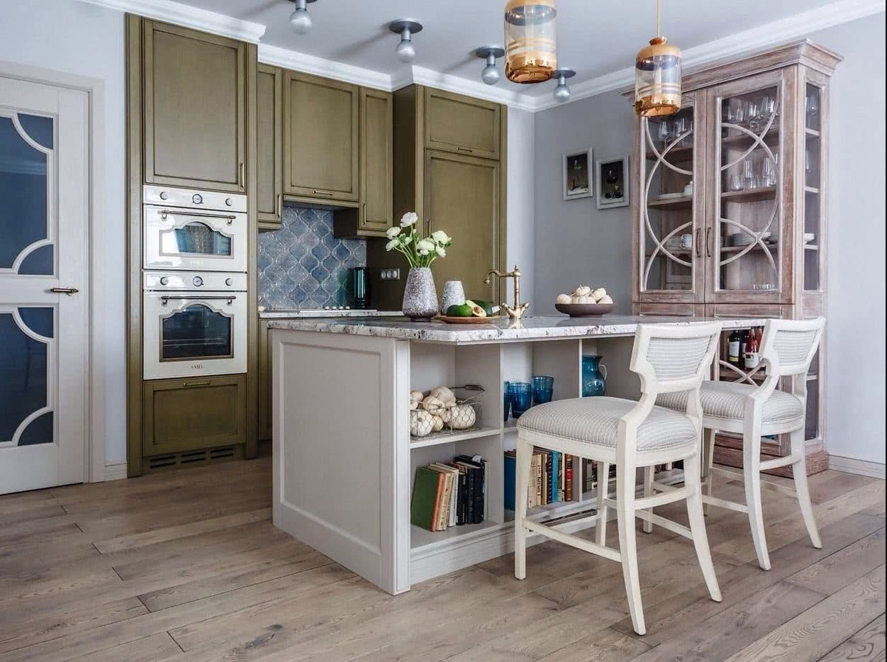 Этот вариант особенно подходит для малогабаритных кухонь. Он делает комнату не только красивой и интересной, но и удобной, функциональной