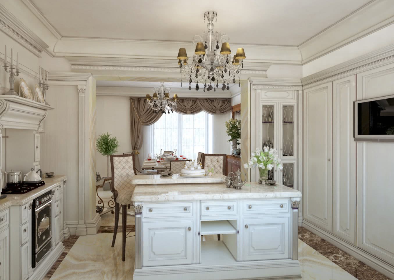 Кухня, оформленная в таком ключе, точно понравится тем, кто любит много света и пространства. Базовым цветом является неизменно белый. Причем именно в той его вариации, которую так и хочется обозвать белоснежной.