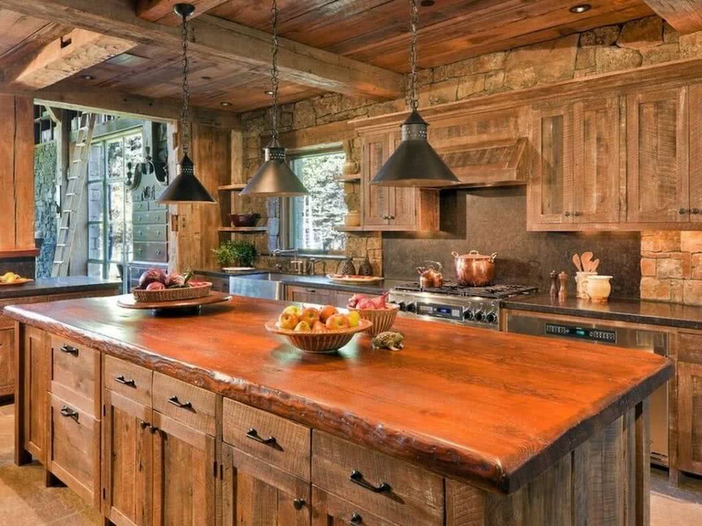 Кухня из дерева вносит свою изюминку в интерьер дома