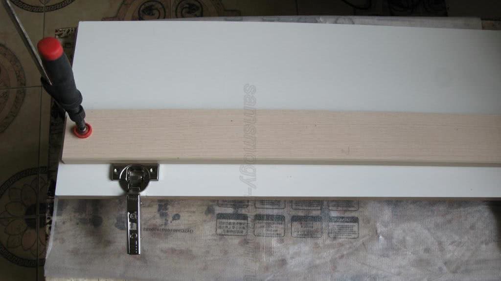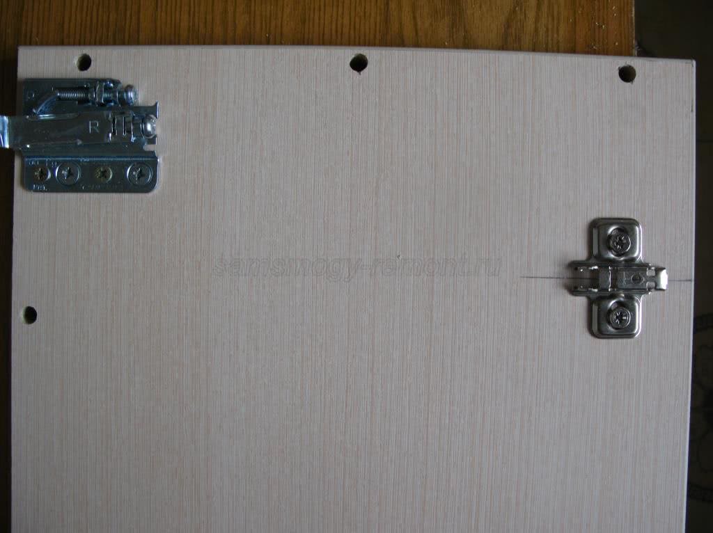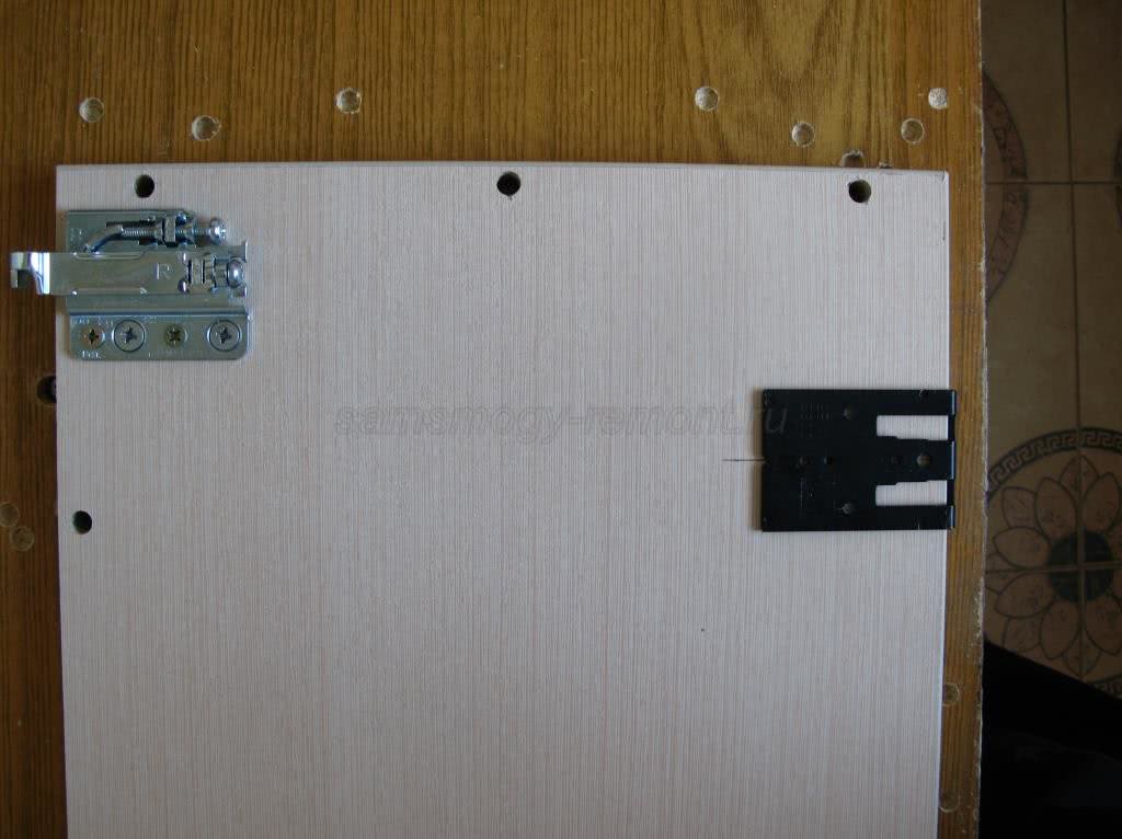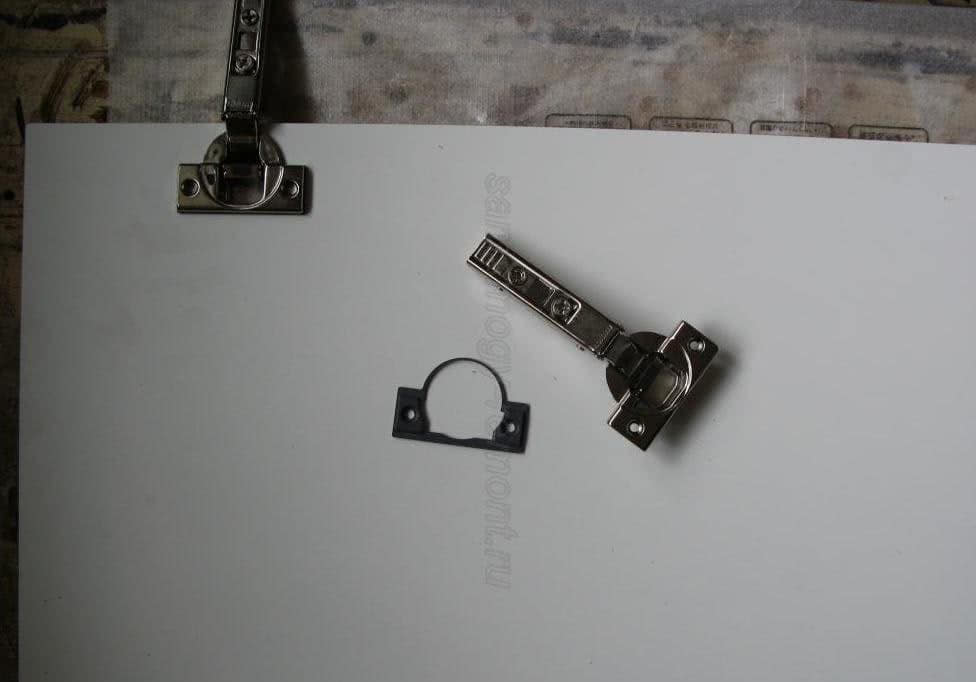 Необходимая фурнитура, чтобы сделать мебель — дверные петли, демпферы (смягчают удар, когда открываются шкафы) и направляющие. Пошаговое описание сборки гарнитура своими руками в домашних условиях из отдельных готовых деталей: