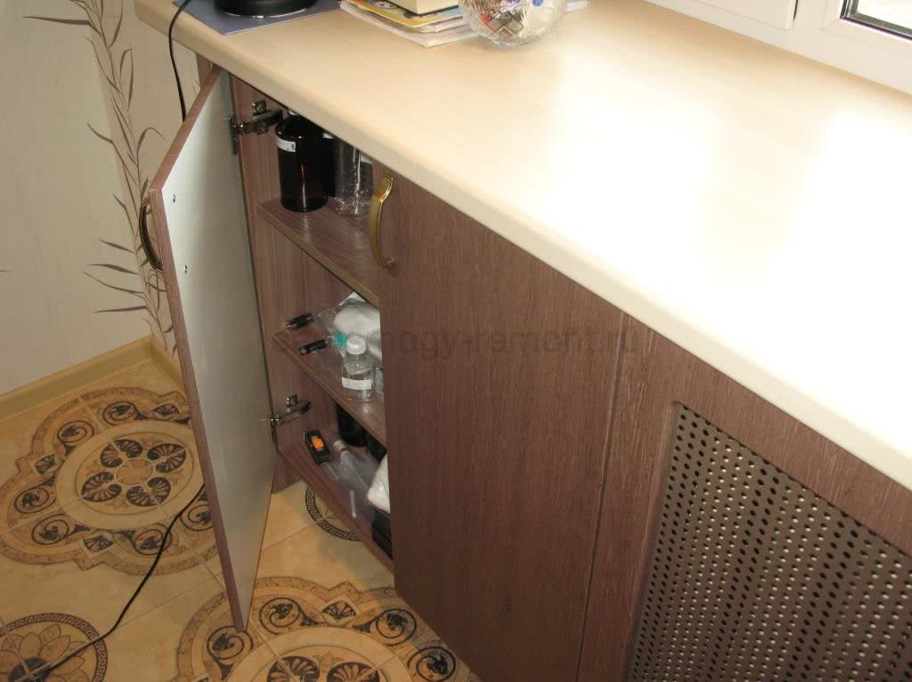 Рис. 24. Ящики за распашными дверками установлены в колонку |