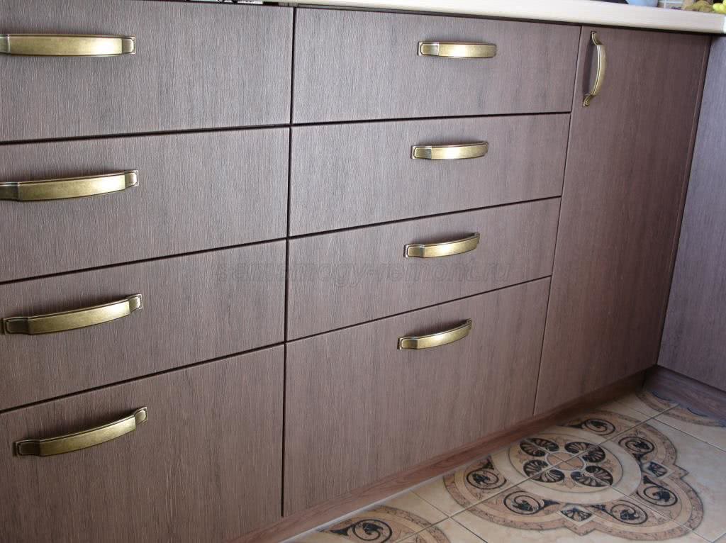 Чтобы немного сэкономить на материале, для изготовления отдельных частей гарнитура можно использовать фрагменты старой мебели для кухни (например, советского производства). Все поверхности предварительно зачищаются. Использовать бывшую в употреблении фурнитуру не рекомендуется: с течением времени она разбалтывается, становясь менее надежной.