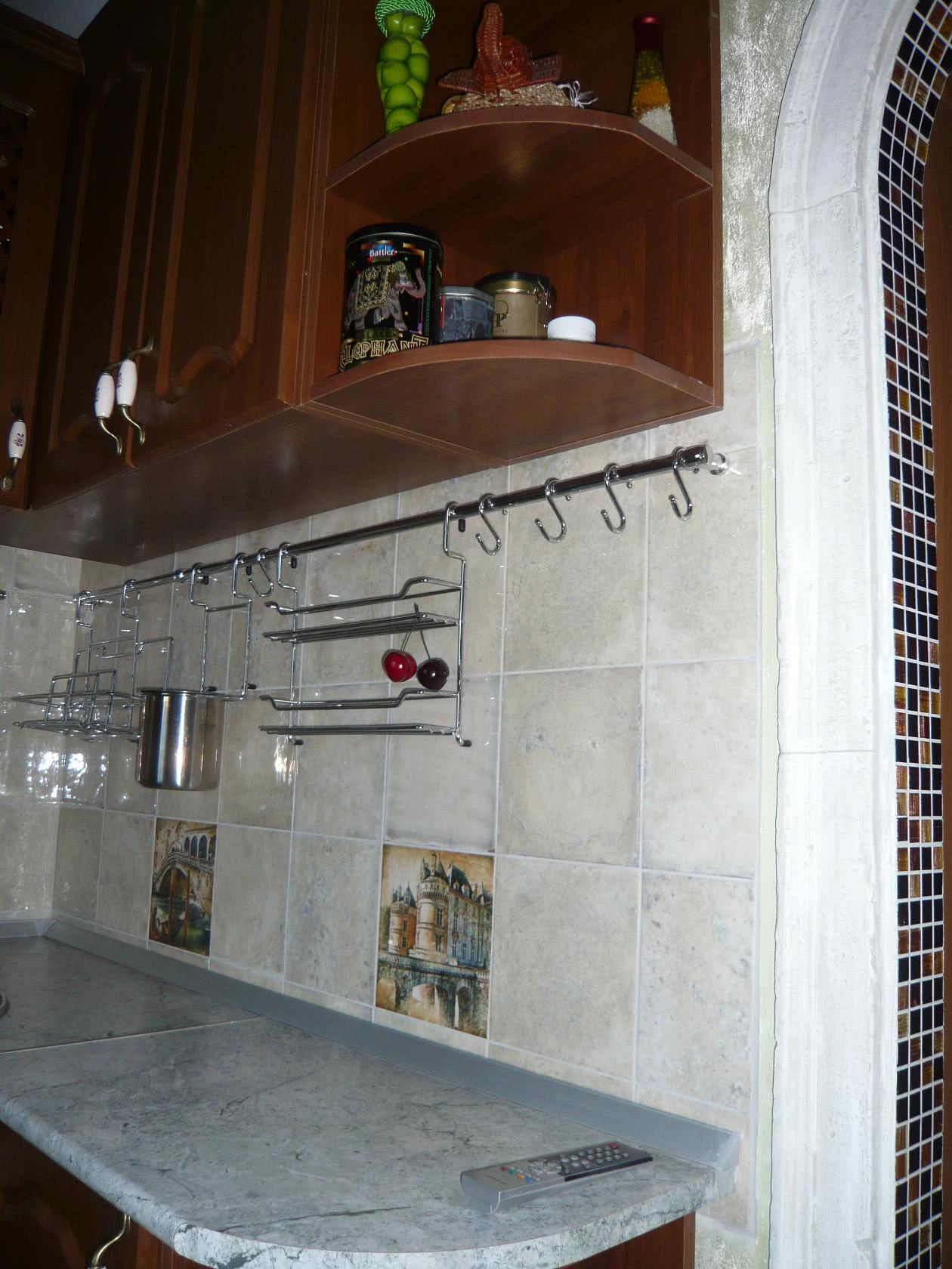 - Рейлинги. Недорогое решение. Небольшие рейлинги прекрасно справляются со своей основной задачей, а благодаря визуальной легкости не утяжеляют дизайн кухни.