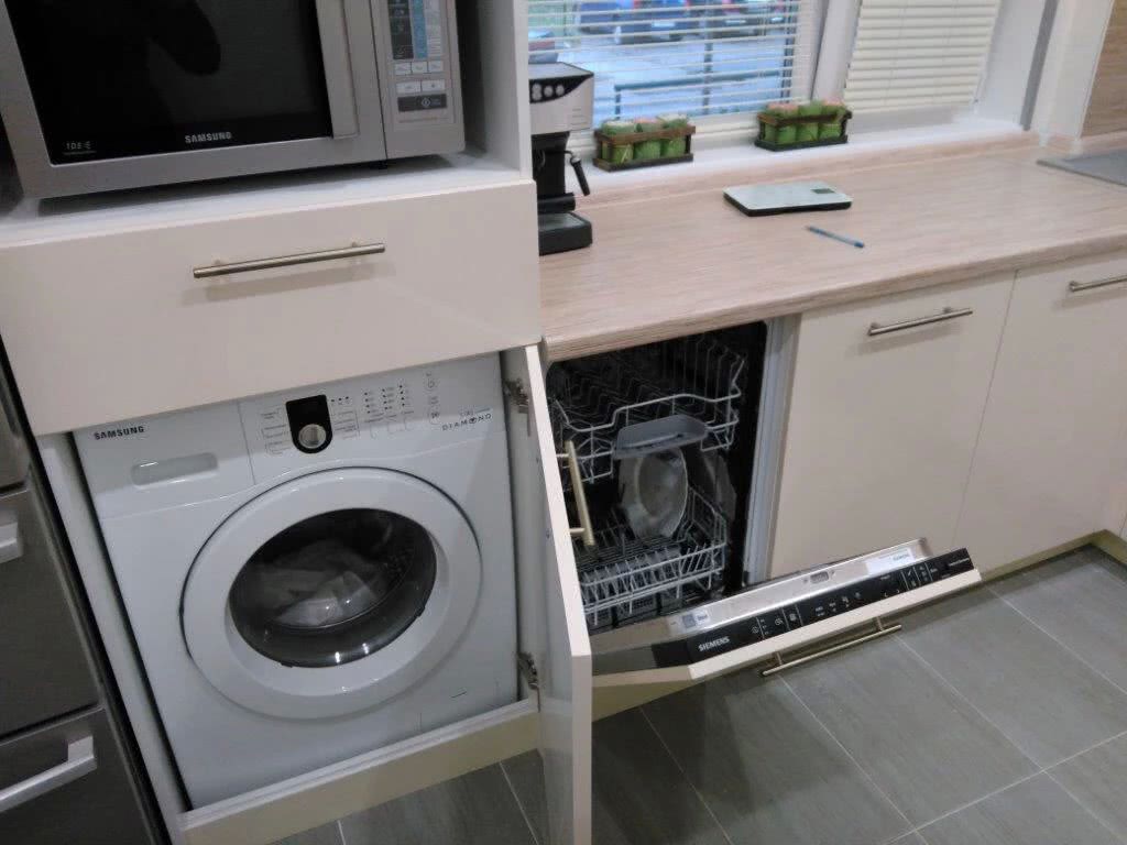 На маленькой кухне много не уместишь, конечно. Допустим, если вы живёте в доме брежневских времён, то о посудомойке можно и не мечтать, потому как, не останется пространства для более важных вещей.