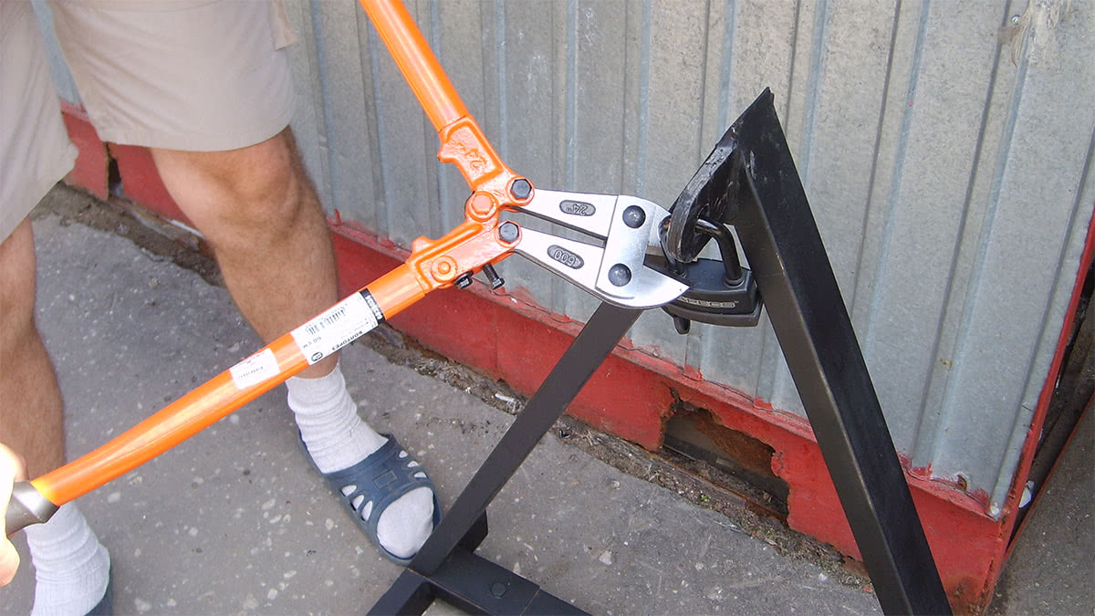 Некоторые умельцы умудряются работать следующим образом. Фиксируют одну рукоять болтореза, а на другую давят массой своего тела. Только фиксация в таких случаях должна быть очень надежной, иначе недалеко и до травмы.