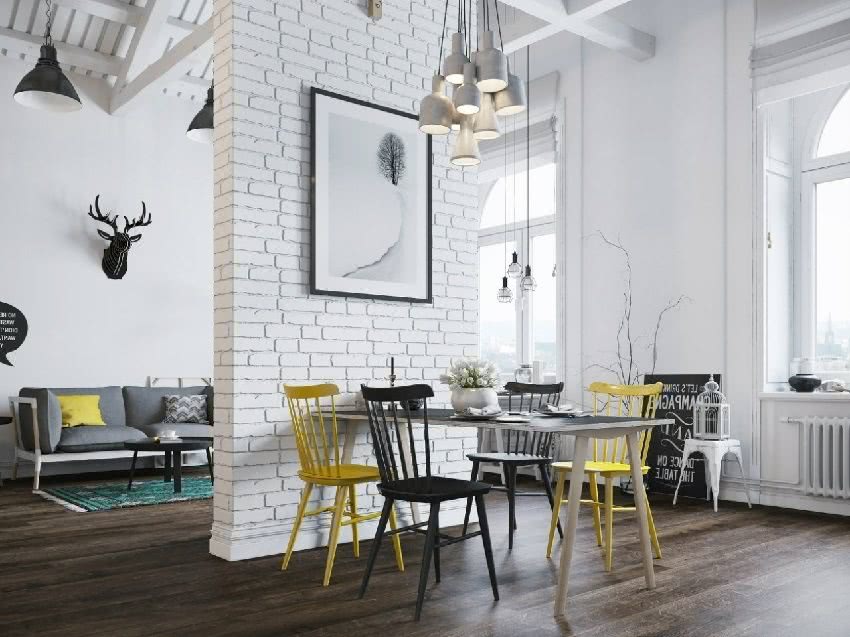 Поэтому, если вы работаете с такой сложной поверхностью, вам нужно будет позаботиться о цвете стен, потолка, аксессуаров и мебели.