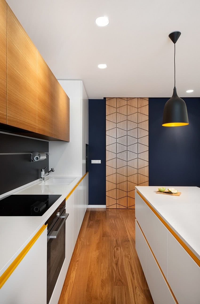 В пространстве кухни ламинатом часто отделяют так называемый «фартук».