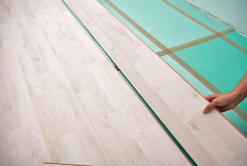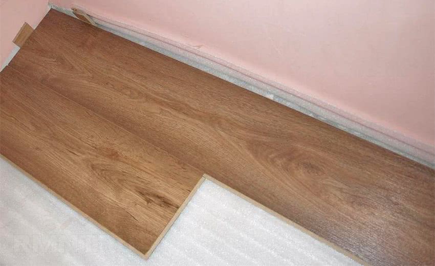Далее укладка ламината на деревянный пол производится по налаженной схеме.