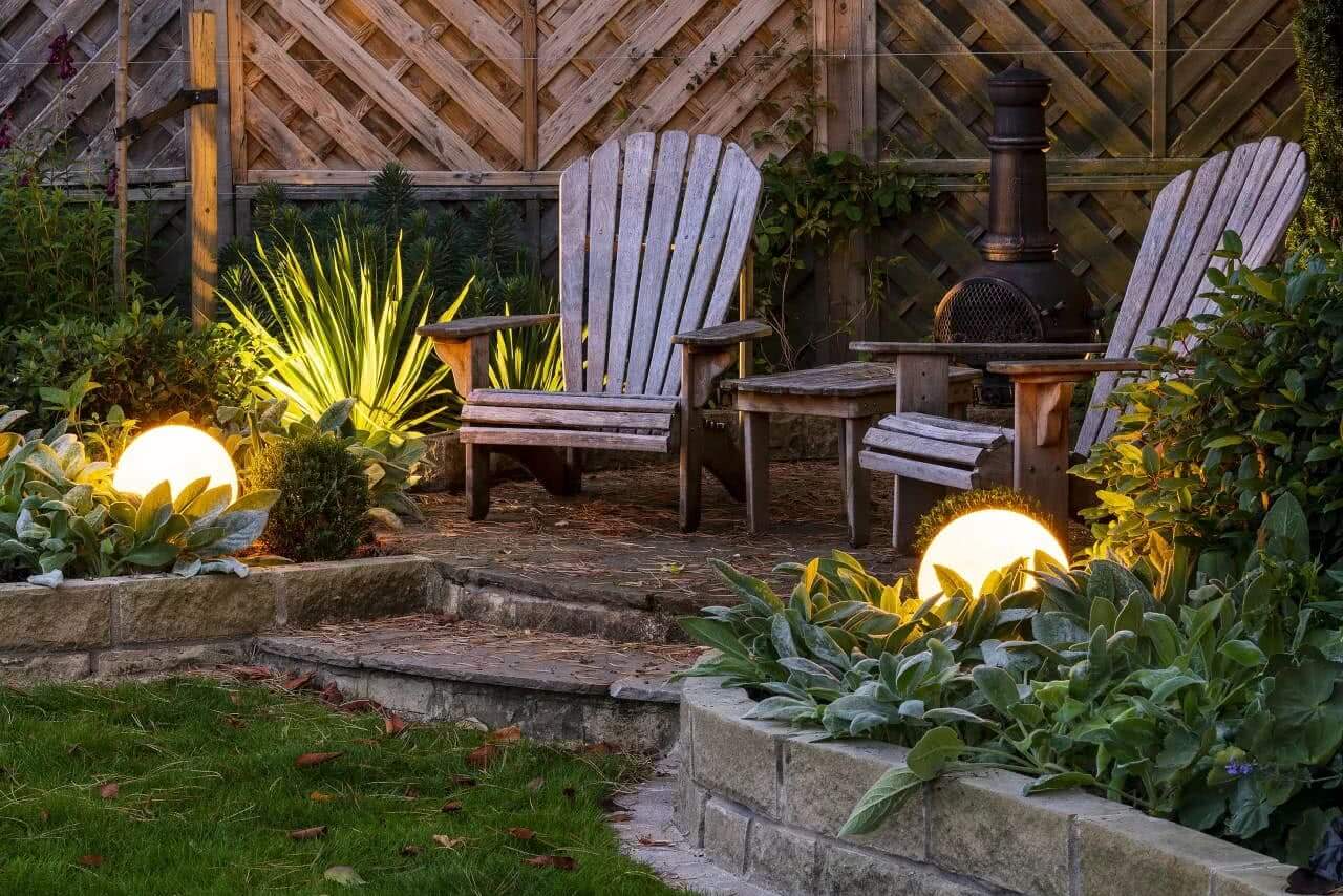 - Освещение может интересно дополнить и подчеркнуть красоту сада в вечернее время.