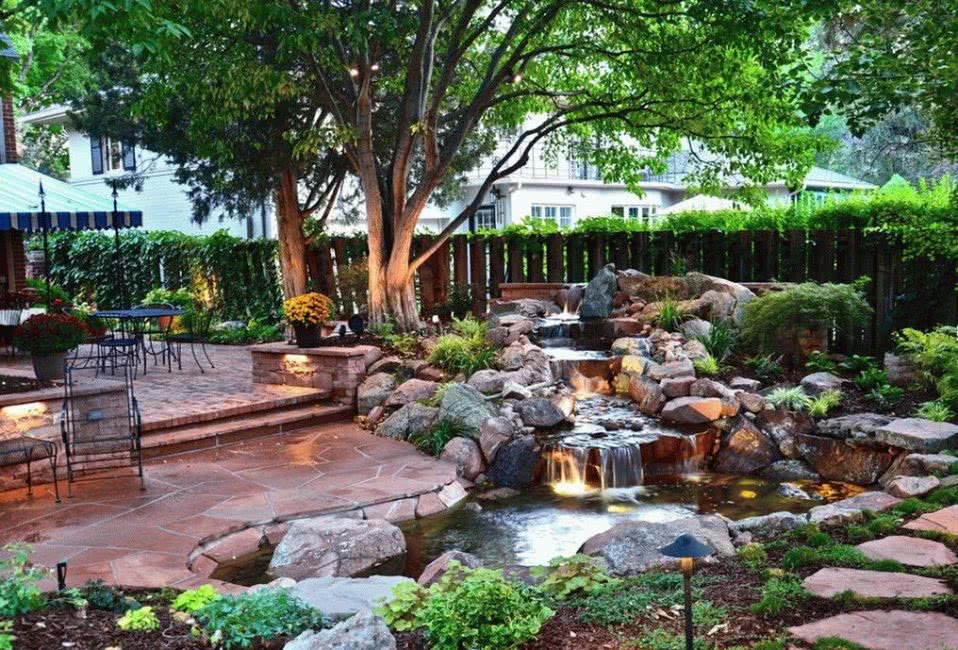 Если перепадов ландшафта не наблюдается, то этот период можно организовать искусственно, хотя это дополнительные материальные затраты. Как вариант, можно сделать пруд и фонтан, как независимые элементы дизайна. Даже без искусственного ручья вся композиция будет смотреться идеально, создавая неповторимый дизайн.