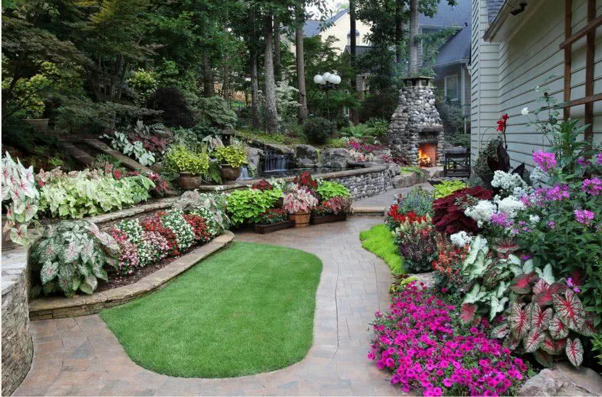 Очень интересно и вполне необычно будет смотреться многоуровневая горка. Подобные конструкции невероятно просты в исполнении. Для создания похожего варианта достаточно знать, как соорудить ступени и сделать по их краям бордюры. Общая площадь сконструированного декора может засеиваться газоном.