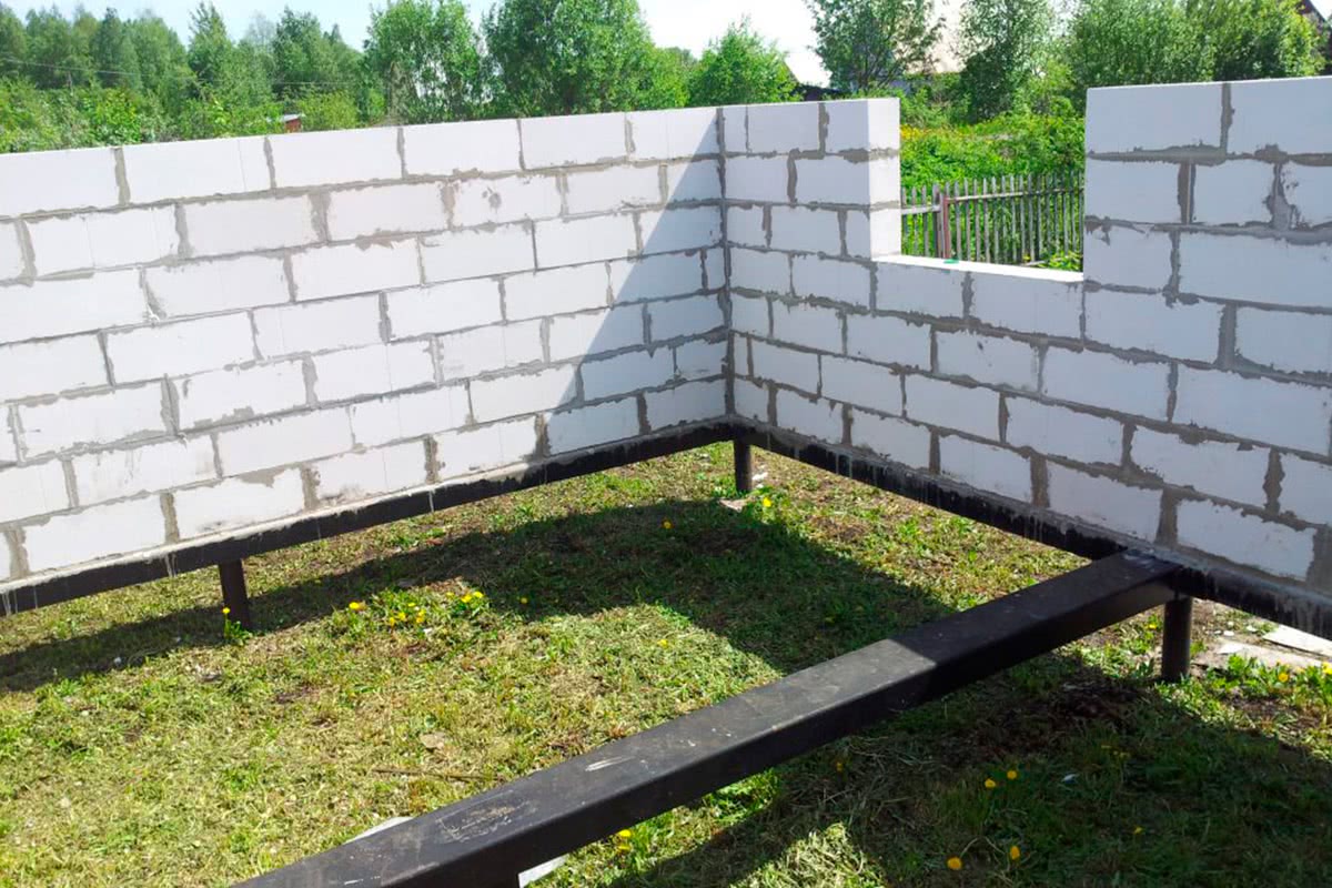 Наиболее экономичный тип фундамента для дома из газоблоков, возводимый своими руками — столбчатый. Основу здания формируют из столбов, установленных по углам строящегося дома и в местах стыков стен, с шагом не более 2,5 метров. Заглубляют опоры ниже уровня промерзания почвы. Над поверхностью грунта столбы обвязывают железобетонным ростверком — балкой, которая предотвращает образование трещин, возникающих при неравномерной усадке дома. Делают их из железобетона, бетона, камня, кирпича. Стальные трубы для этих целей не подходят: они подвержены коррозии, поэтому их применяют только для временных строений.