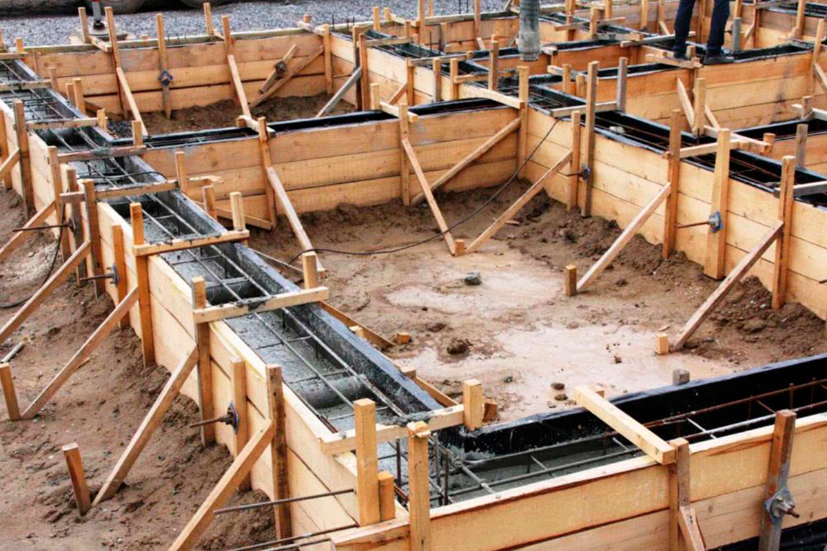 При невозможности единовременной заливки допускается послойное формирование фундамента с равномерным распределением раствора по участку. Запрещено заливать вяжущим составом отдельные стены на разных этапах во избежание снижения прочности конструкции.