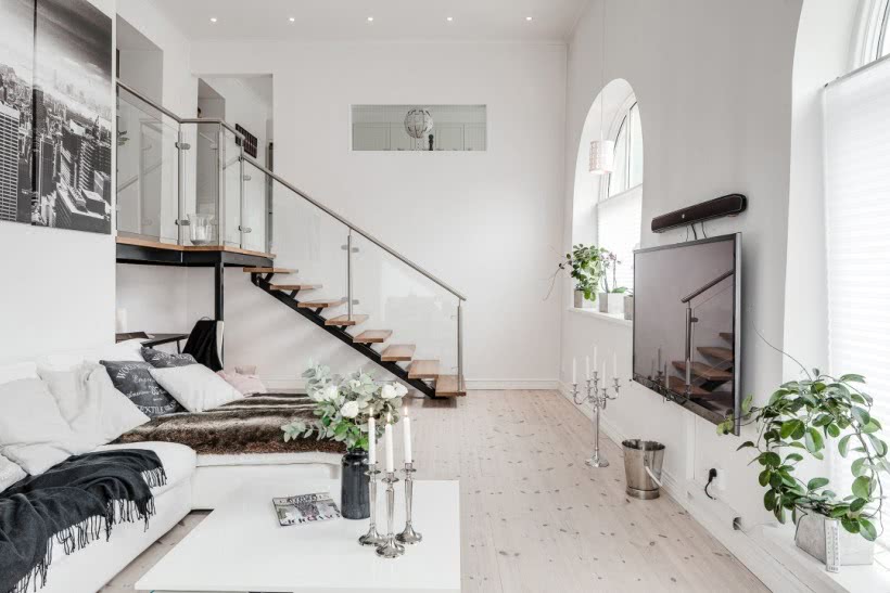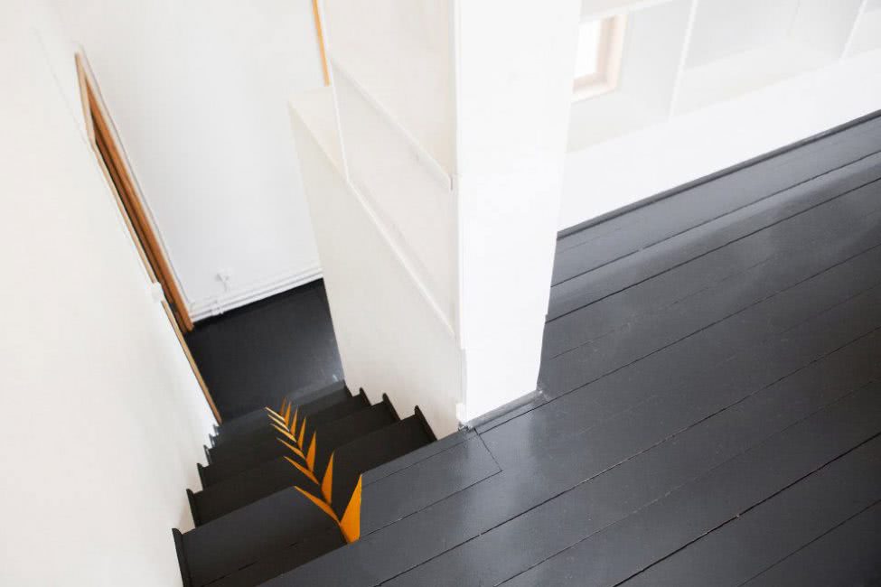 - С открытой планировкой лестничный пролет может быть видна во всем пространстве, поэтому вы можете сделать ее особенностью.