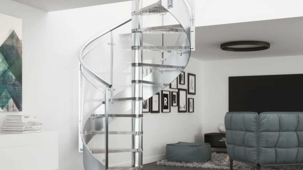 - Винтовой или изогнутый лестничный пролет дает мгновенный вау-фактор, но лучше всего работает в большом пространстве. Спирали обтекают центральный полюс и хороши для небольших пространств, но они могут быть неудобными в использовании для детей, пожилых или немощных людей.