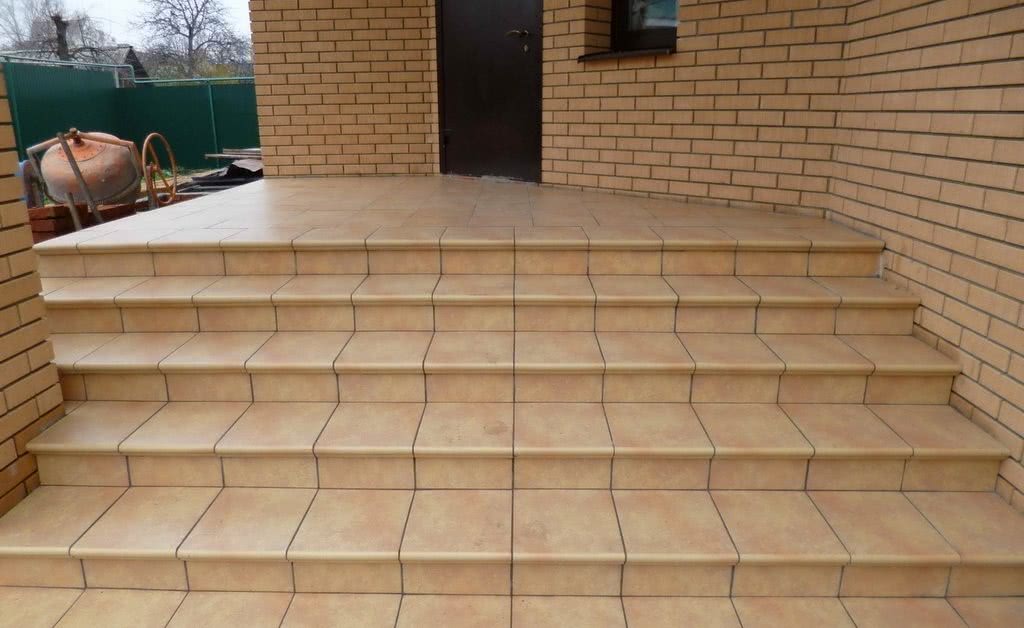 Оклеивать крыльцо из бетона своими руками плиткой нужно по следующей технологии:
