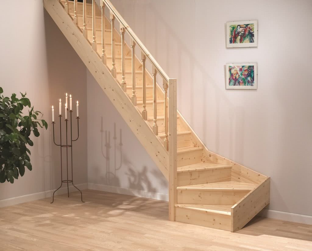 - При выборе породы дерева, если ориентироваться на разумное сочетание качество/цена, рекомендуется отдавать предпочтение сосне или лиственнице. Последняя даже лучше, так как менее подвержена гниению. К тому же при впитывании жидкости она становится только крепче. Так как в любом жилом помещении обязательно будут испарения – более чем актуально, особенно если в смежной комнате находится кухня. Все остальные породы – кедр, дуб и ряд иных – вряд ли относятся к бюджетным вариантам деревянной лестницы.