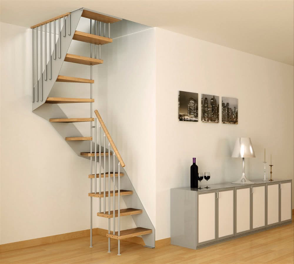 Свое название модульная лестница получила оттого, что собирается из нескольких компонентов (модулей), которые вставляются друг в друга, закрепляясь винтами, болтами или специальными строительными шпильками. Несущий элемент конструкции – центральный косоур. Такая система предназначается для установки подъема на второй этаж, высотой не более 3,5 метра. Невысокая стоимость и простота монтажа привела к тому, что такой вид пролета популярен во всем мире. Для сборки модульной лестницы не требуется специальных навыков монтажа.