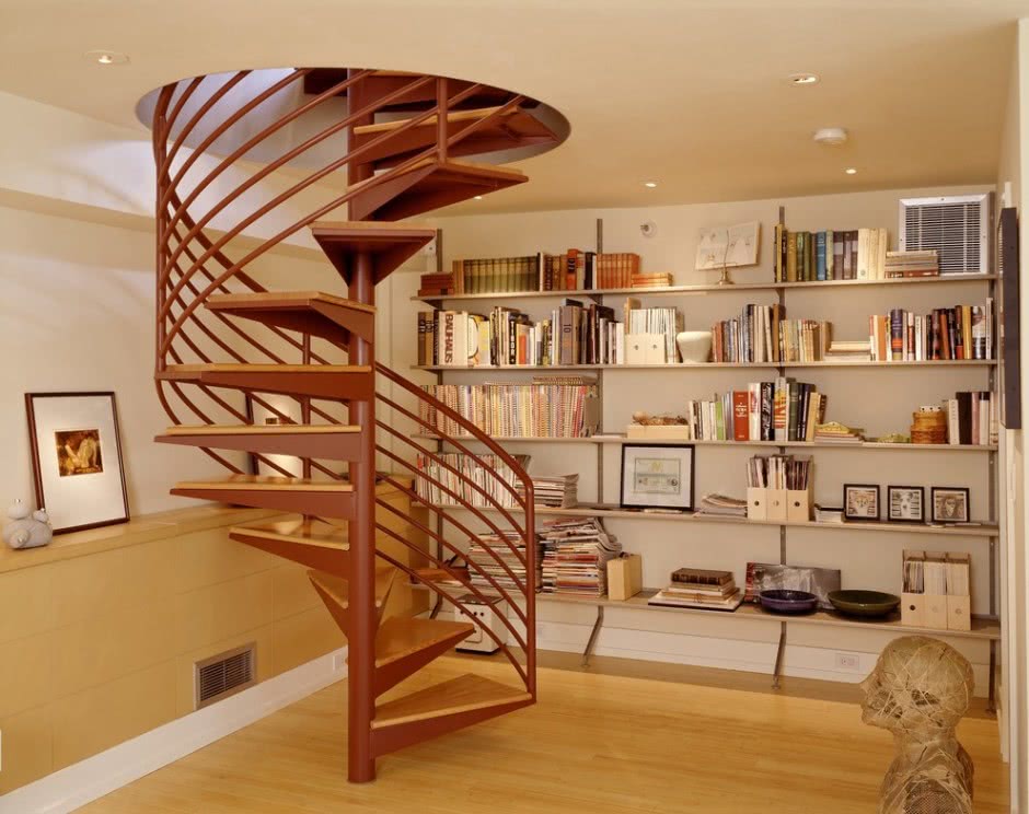 - Изящная лестница хотя и может оказаться одним из главных элементов интерьера, но она крадёт свободную площадь обоих этажей. И от этого никуда не деться. Даже при выборе минимальных размеров и обустройства конструкции винтового типа теряется 5-7 м2.