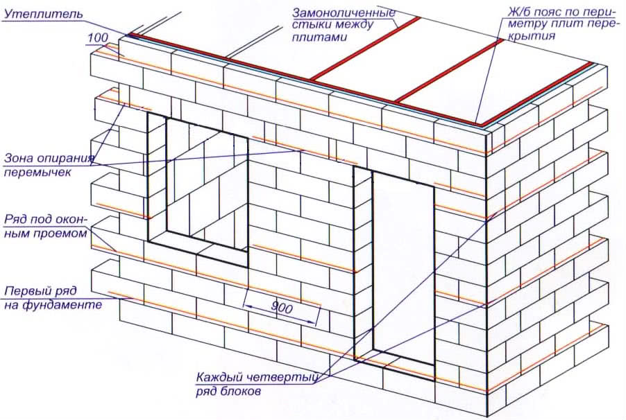 Схема стены из пеноблоков