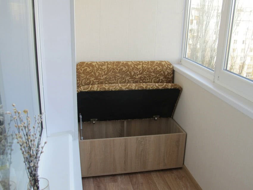 Диван с откидной крышкой — удобная конструкция для использования на балконе