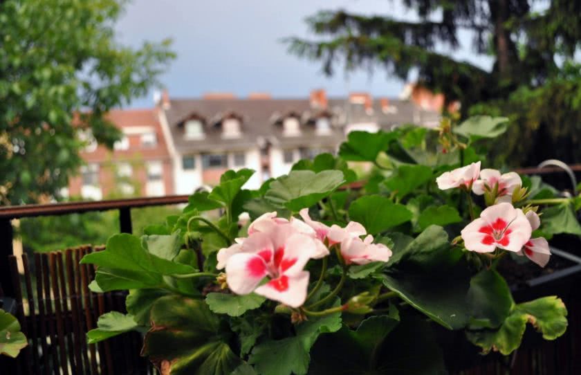 За геранью очень легко ухаживать. Она растёт даже на улице в открытом грунте, часто используется для городского озеленения. Вам нужно часто ее поливать, при этом вода может быть простой – водопроводной. Если балкон у вас холодный, и прогноз погоды предупредил о резком похолодании, то лучше занести на это время цветы в дом. Герань не боится жарких подоконников, помещений, сквозняка.