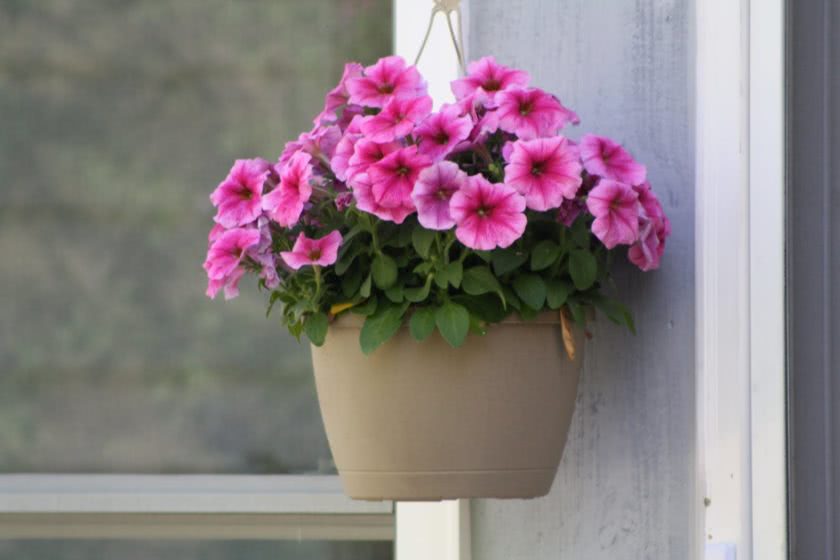 Ампельная петуния известна всем. Ее яркие, красивые цветы лилового, сиреневого и красного цвета летом можно встретить не только в садах, но и в качестве украшения городских балконов и террас кафе. Петунии нужен регулярный полив, хорошо освещенное теплое место и плодородная почва. Она будет радовать вас своим цветением до наступления холодов.