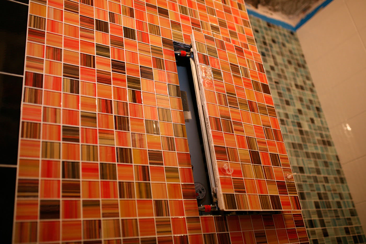 С учетом этих требований не только подбирается модель и размеры люка, но и корректируется его положение на стене. В зависимости от размещения плитки во время разбивки конструкция может немного перемещаться в любую сторону, за чет этого исключается нарушения рядов. Во время перемещения люка нужно следить, чтобы все коммуникации оставались доступными.
