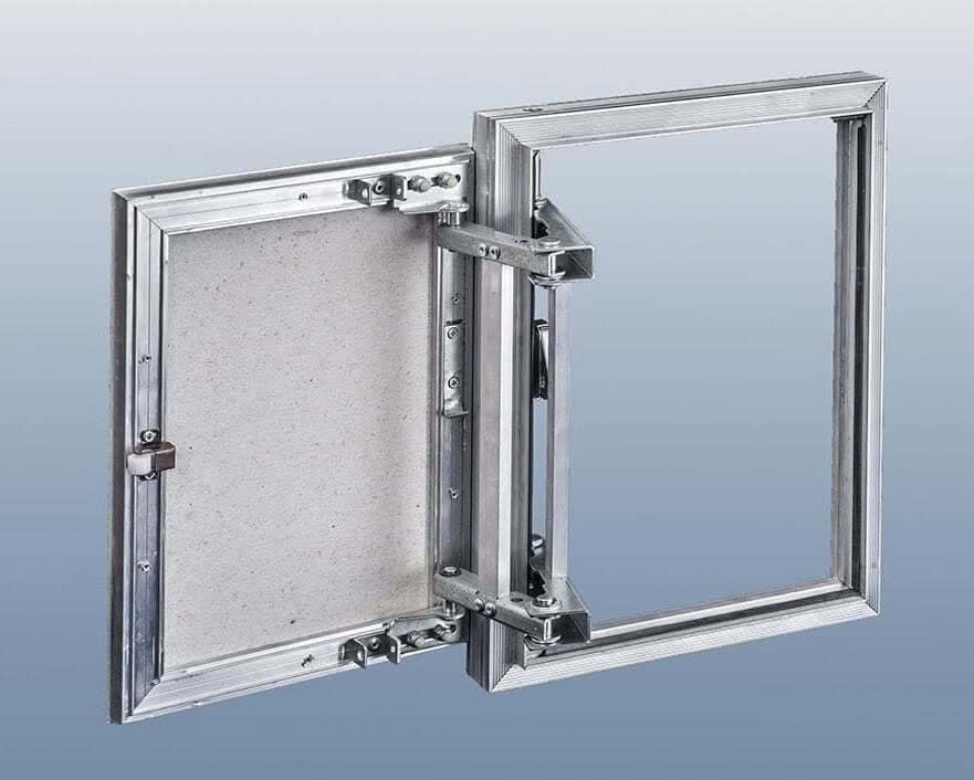 - откидные люки: после открытия фиксирующего крепления дверца из вертикального положения переходит в горизонтальное. Конструкции этого вида удобно использовать там, где открыть или сдвинуть дверцу в сторону не представляется возможным, также в местах, которые требуют редкого осмотра;
