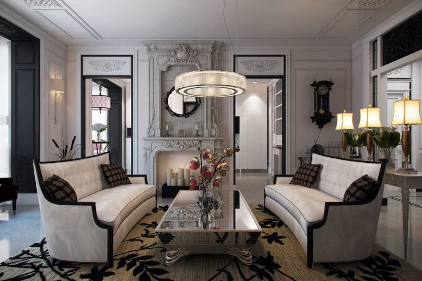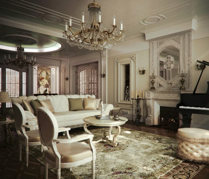 Оформлять помещение в них можно только если есть высокие потолки и большая площадь, строго придерживаясь норм стиля. Тут очень легко перейти к аляповатости и чрезмерности.