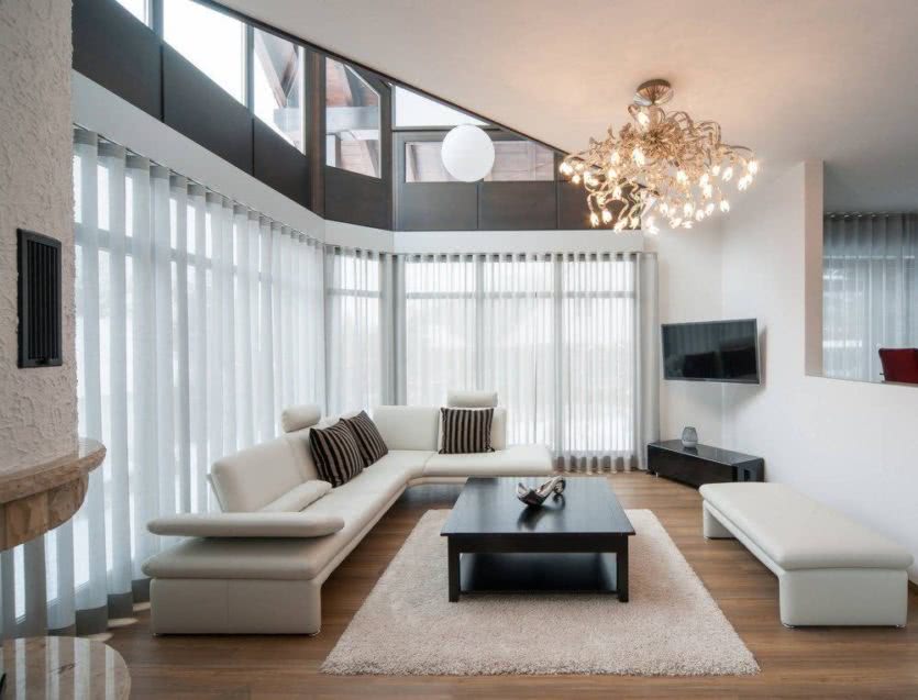Люстры в интерьере гостиной чаще всего выбираются так, чтобы дополнять общий стиль, поэтому исходить следует именно от него.