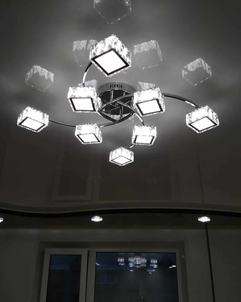Люстры различаются и по конструкции. Например, потолочная люстра в гостиную плотно прилегает к потолку. У неё нет ни цепочек, ни длинных ножек. Этот вид светильника – идеальный вариант для комнаты с низким потоком.
