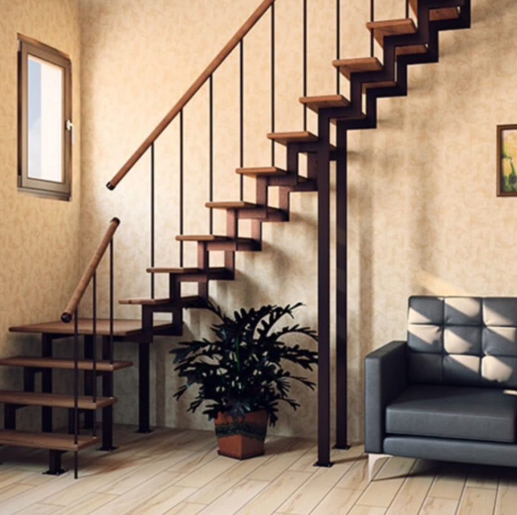 Свое название модульная лестница получила оттого, что собирается из нескольких компонентов (модулей), которые вставляются друг в друга, закрепляясь винтами, болтами или специальными строительными шпильками. Несущий элемент конструкции – центральный косоур. Такая система предназначается для установки подъема на второй этаж, высотой не более 3,5 метра. Невысокая стоимость и простота монтажа привела к тому, что такой вид пролета популярен во всем мире. Для сборки модульной лестницы не требуется специальных навыков монтажа.
