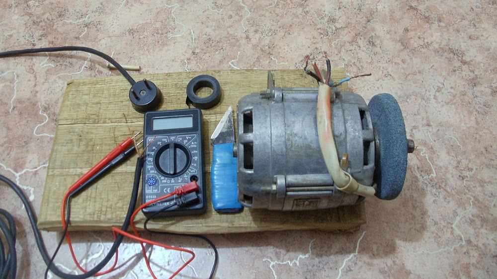 Найдите обмотки, предназначенные для пуска и работы, воспользуйтесь тестером. Как отличить пусковую и рабочую обмотки? Показатель сопротивления первой достигает 30 Ом, рабочей — 12 Ом. Рабочий элемент подключается к электросети 220 Вт, пусковой работает при присоединении одного конца к одному из выводов, находящихся на катушке, вторым концом достаточно прикоснуться на короткое время к следующему выводу и сразу же отложить в сторону.