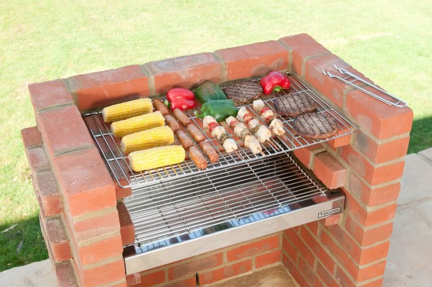 Всем известно, что кирпич долго сохраняет тепло и потому на таком мангале чудесно получается приготовить как шашлык, мясо на решетке, так и плов, уху. Выбор блюд ограничивается только вашей поварской фантазией.