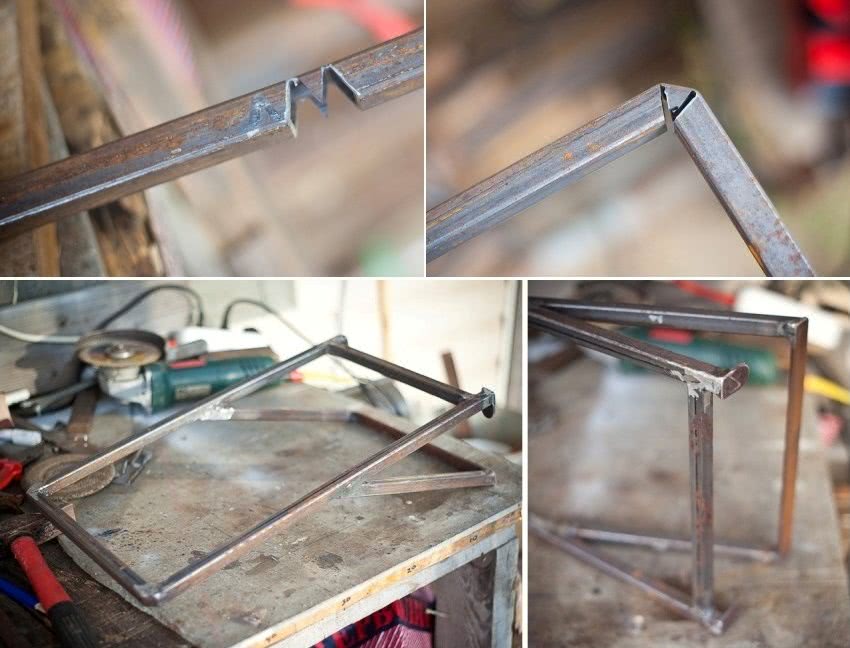 - Делаем ножки из профильной трубы или уголка: