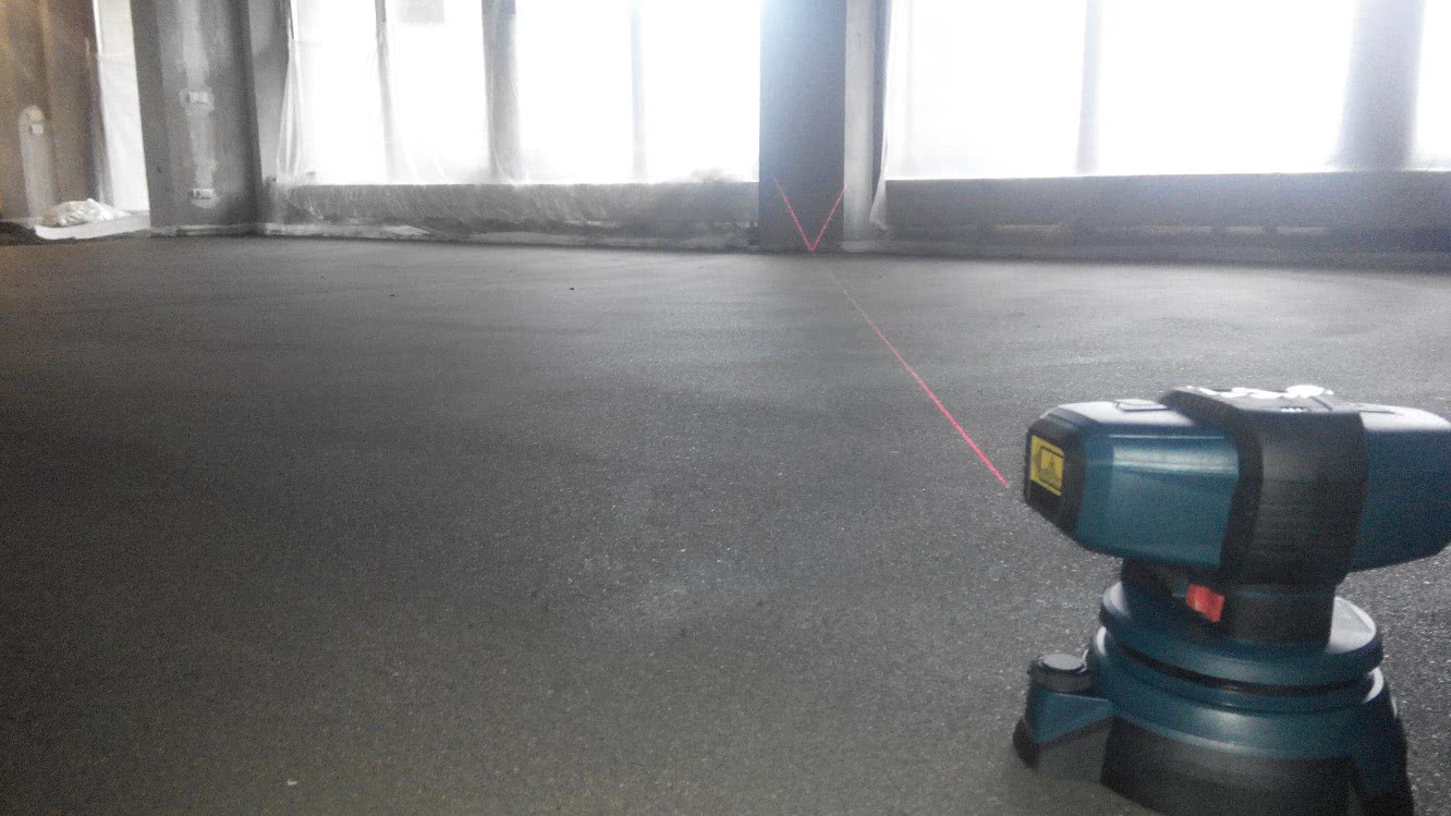 При помощи уровня (обычно лазерного) по периметру всех комнат потребуется выставить уровень 0 – это будет та горизонталь, которая проходит через точку пола, расположенную выше всех остальных. Отсюда же и будет отмерена толщина стяжки с новой горизонталью.