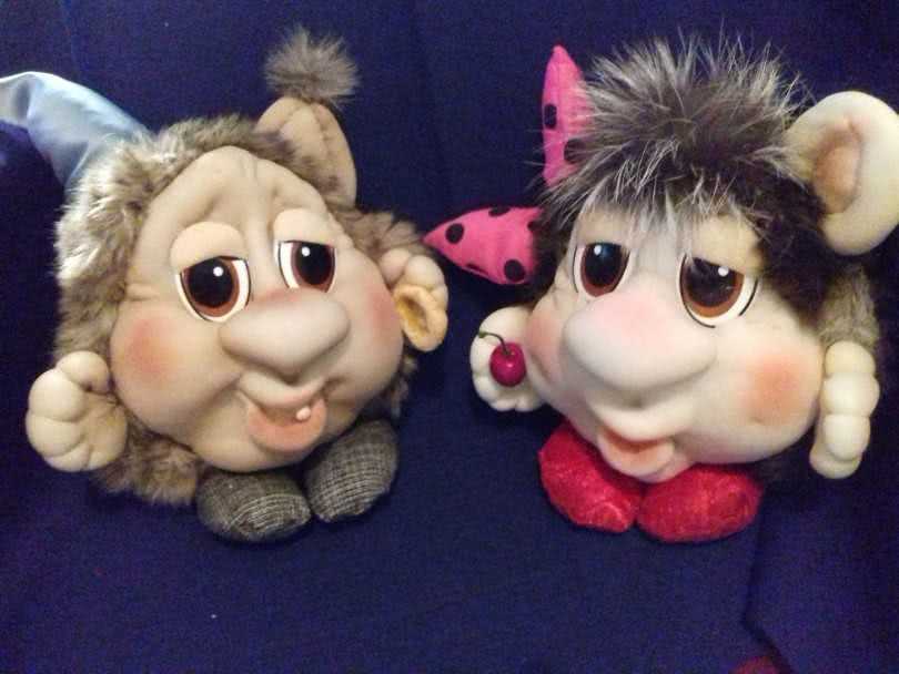 - Изготовление волос может выполняться в виде пришитого к голове парика («обнимашки») или надежно закрепленных прядей («заплеташки»). В обоих случаях стежки должны быть плотными, во избежание просвечивания ткани головы. Многие искусницы вместо волос размешают на головке шапочку.